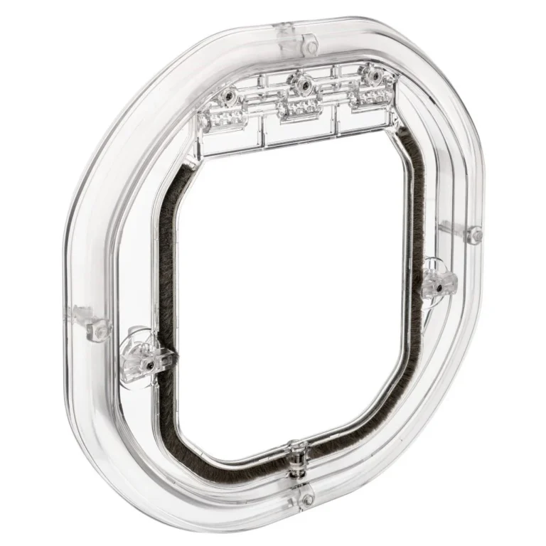 This pet door has a weather seal flap to reduce draughts, all screws are stainless steel, avoiding potential rust stains on door panels. Four way locking dials allow, the owner, flexibility with the pets movements, this door also includes an additional clip on security panel.