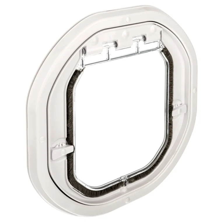 This pet door has a weather seal flap to reduce draughts, all screws are stainless steel, avoiding potential rust stains on door panels. Four way locking dials allow, the owner, flexibility with the pets movements, this door also includes an additional clip on security panel.
